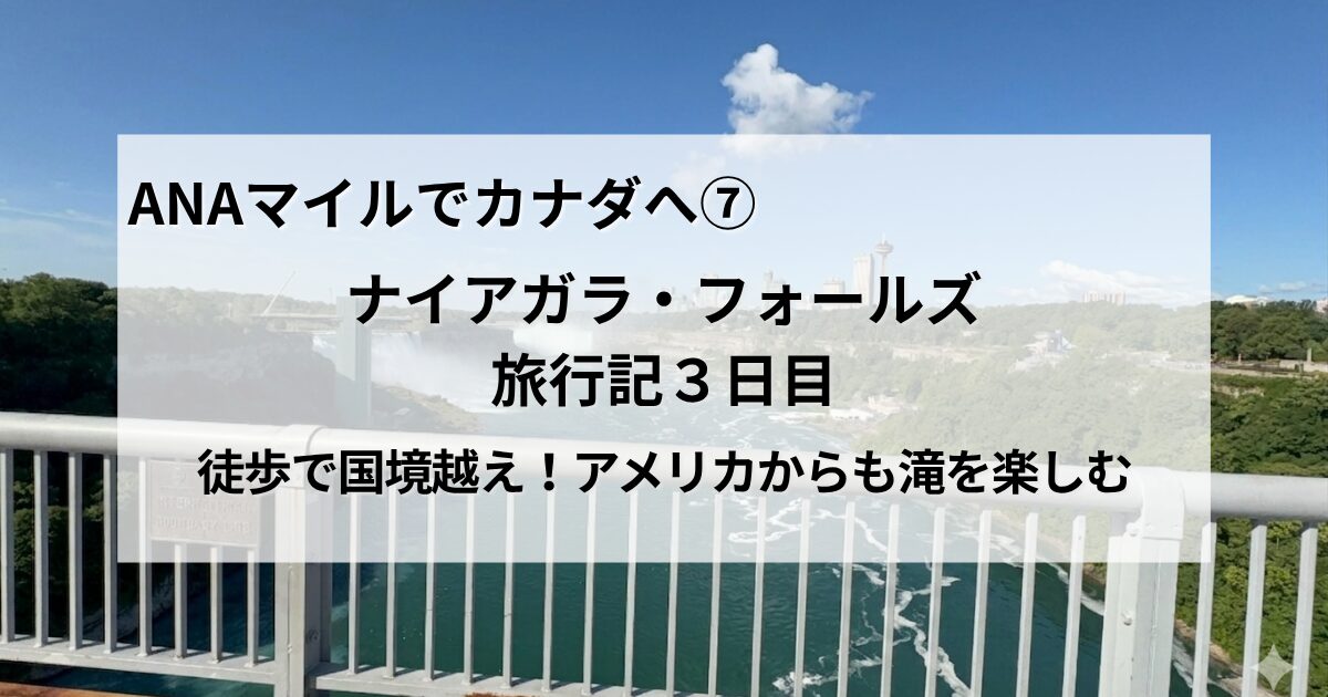 ナイアガラの滝3日目。レインボー・ブリッジを徒歩で渡り、アメリカ側からみた滝の様子をお伝えしました。