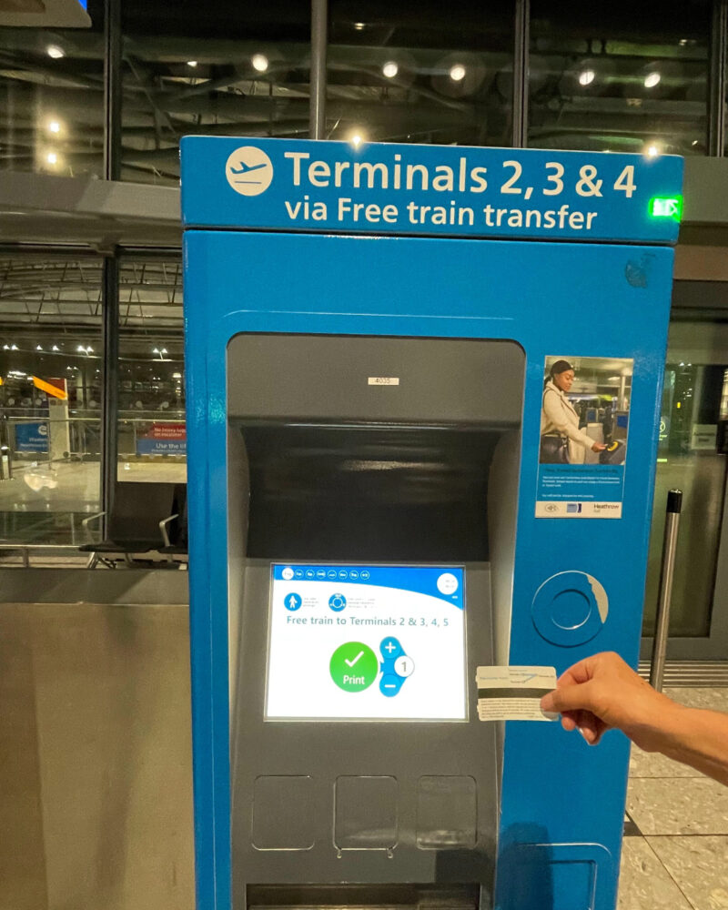 ターミナル間は無料で電車移動ができます。専用の発券機があるのでそこでチケットを入手します。